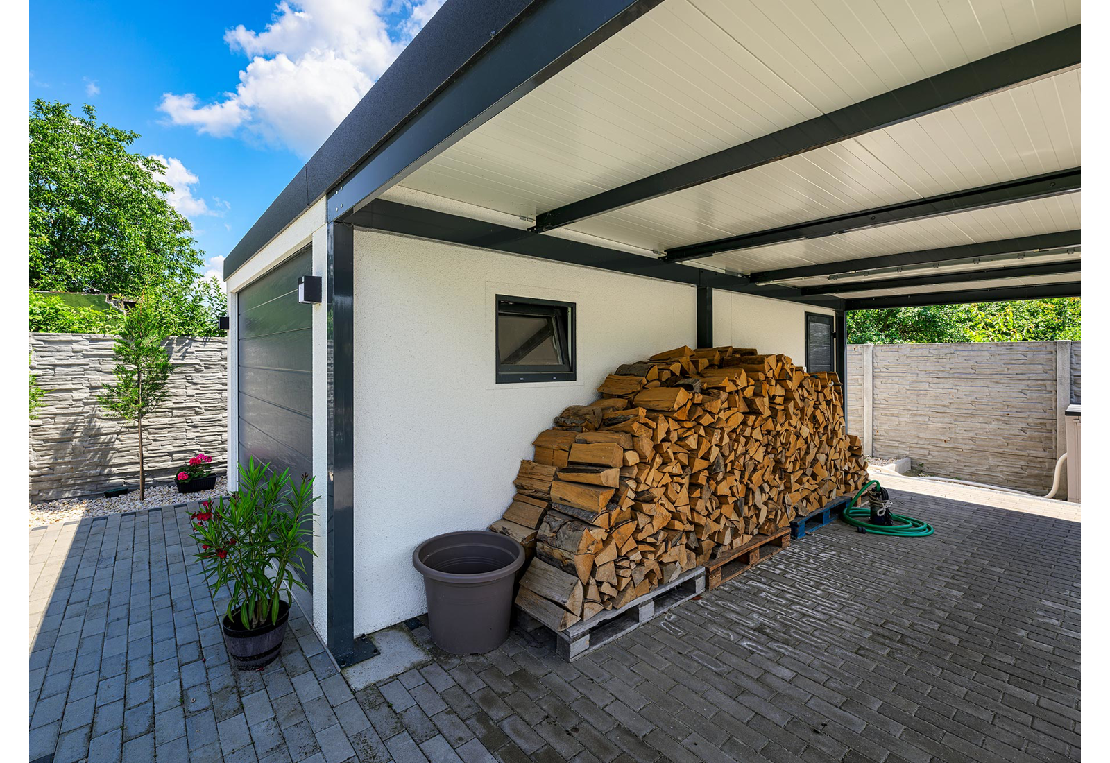 Die Garage Ihrer Träume kann Wirklichkeit werden! Unsere geräumige, montierte Garage vereint modernes Design mit höchster Funktionalität. Ausgestattet mit hochwertigen Hörmann-Garagentoren, integriertem Beleuchtungssystem und der Möglichkeit zum Anschluss an Solarpanele, bietet sie maximalen Komfort und Energieeffizienz. Die intelligent konstruierten Sicherheitstore gleiten platzsparend unter die Decke und sorgen für eine optimale Raumnutzung. Dank des ultraleisen Öffnungs- und Schließmechanismus genießen Sie höchsten Bedienkomfort – fast unhörbar aber spürbar praktisch.