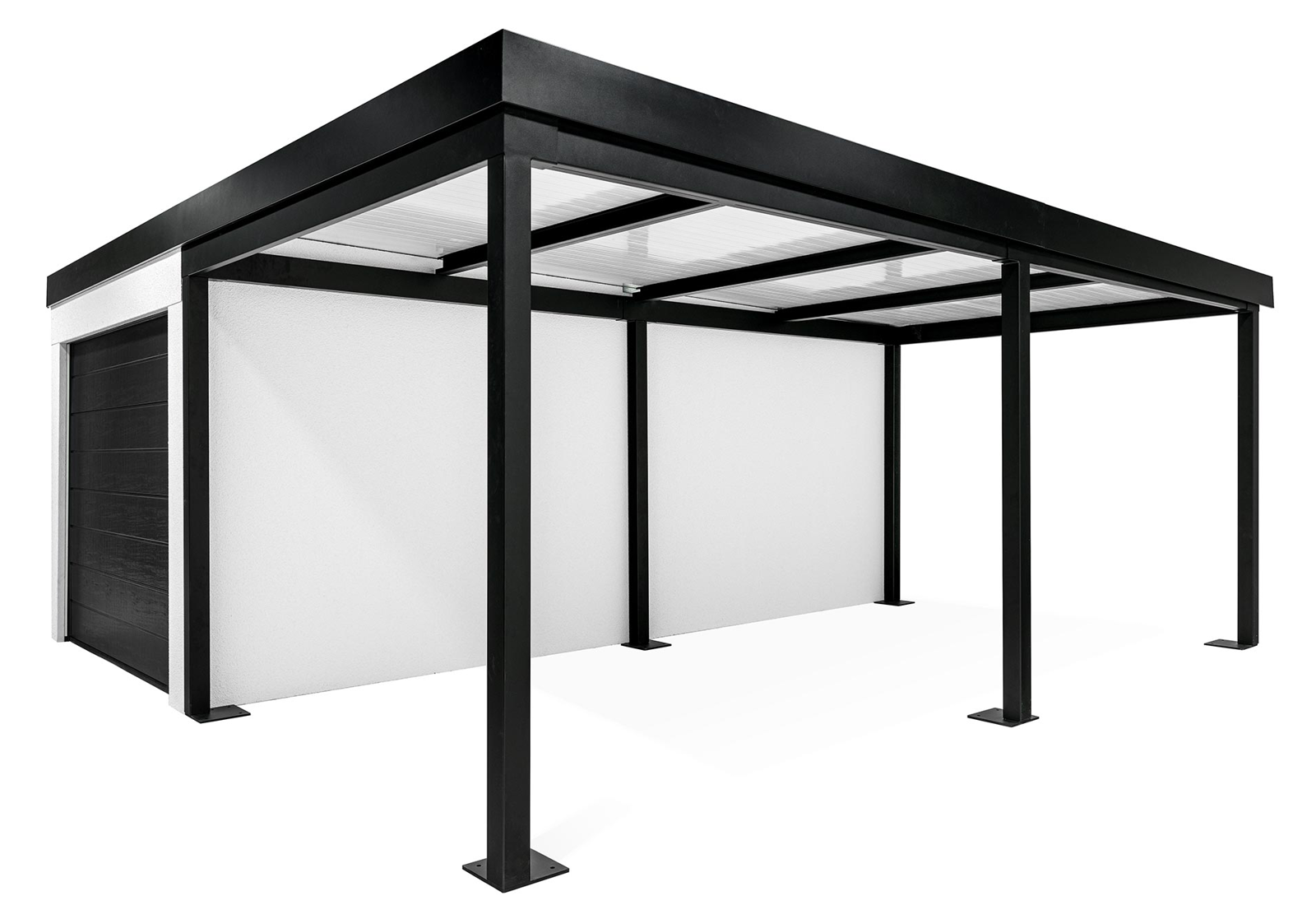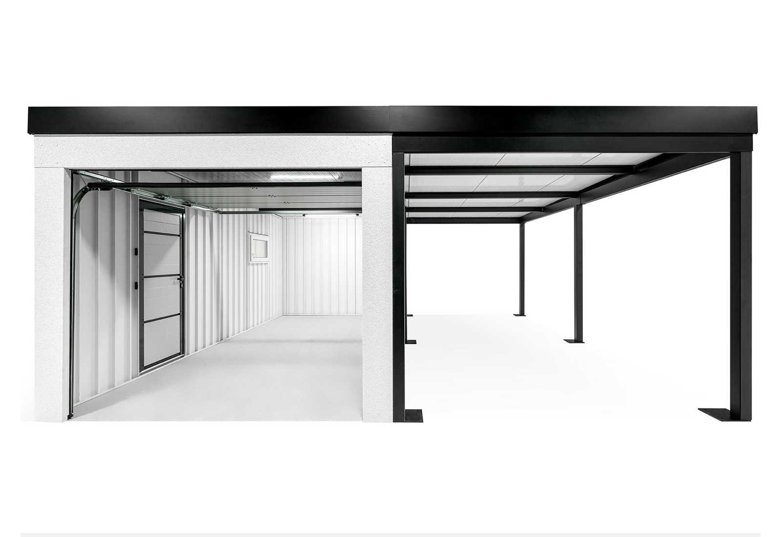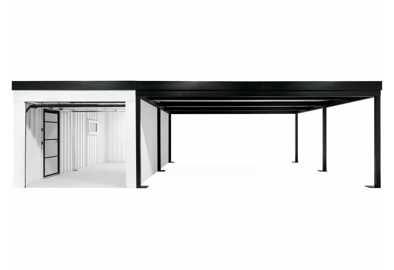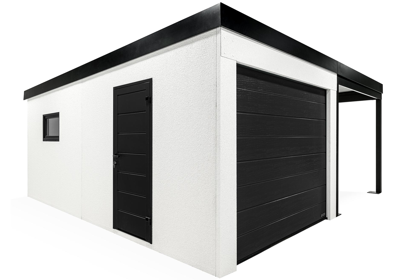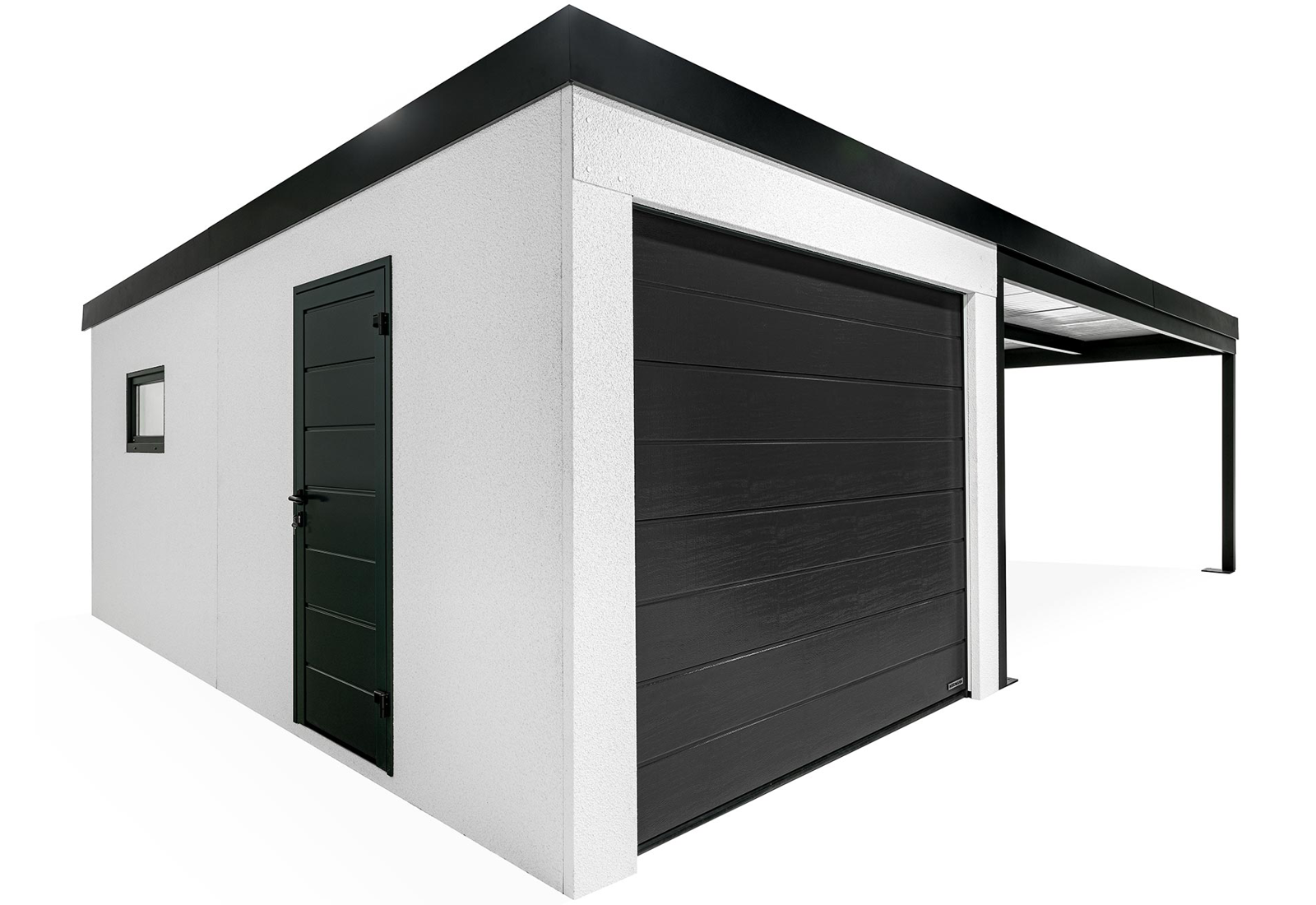 GARDEON® Garage mit Hörmann Garagentor, Fenster und Carport rechts