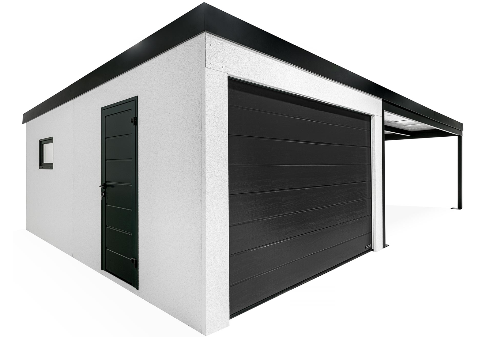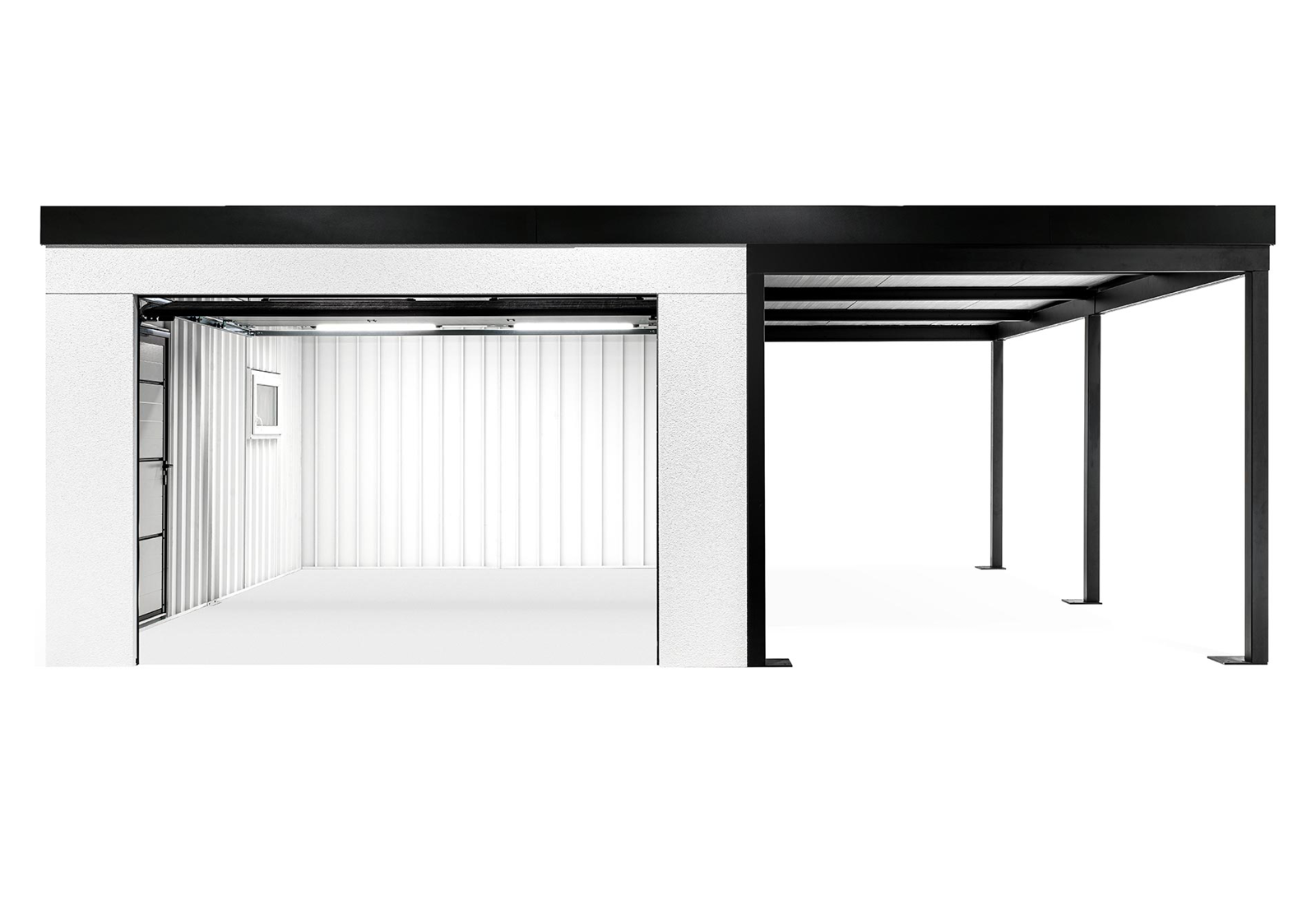 GARDEON® Garage mit Hörmann Garagentor, Fenster und Carport rechts