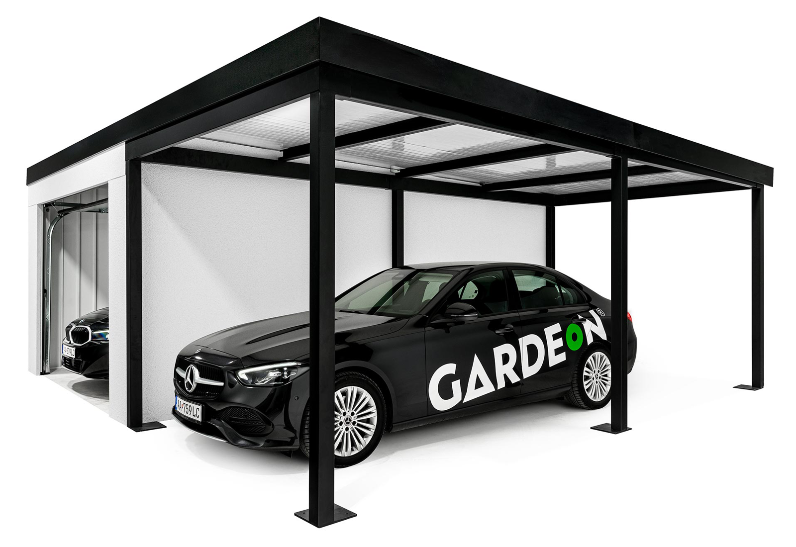 Entdecken Sie die Innovation im Bauwesen – GARDEON® Garagen mit fertigem Designputz der Schweizer Marke KABE. Unsere Garagen bieten Ihnen eine moderne Lösung mit herausragender Qualität und einzigartiger Technologie. Die ganzjährige Fassade aus selbstreinigendem Putz widersteht mühelos Wasser, hohen Temperaturen und allen Wetterbedingungen. Dank der fortschrittlichen Technologie ist die Stahlwand mit nur 5 cm Dicke wesentlich dünner als eine klassische 20 cm dicke Mauerwand – so sparen Sie wertvollen Platz sowohl auf Ihrem Grundstück als auch im Inneren der Garage.
