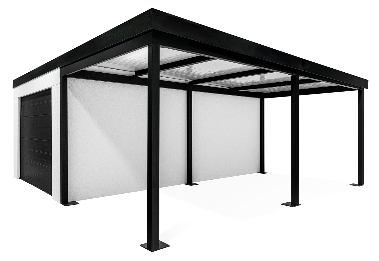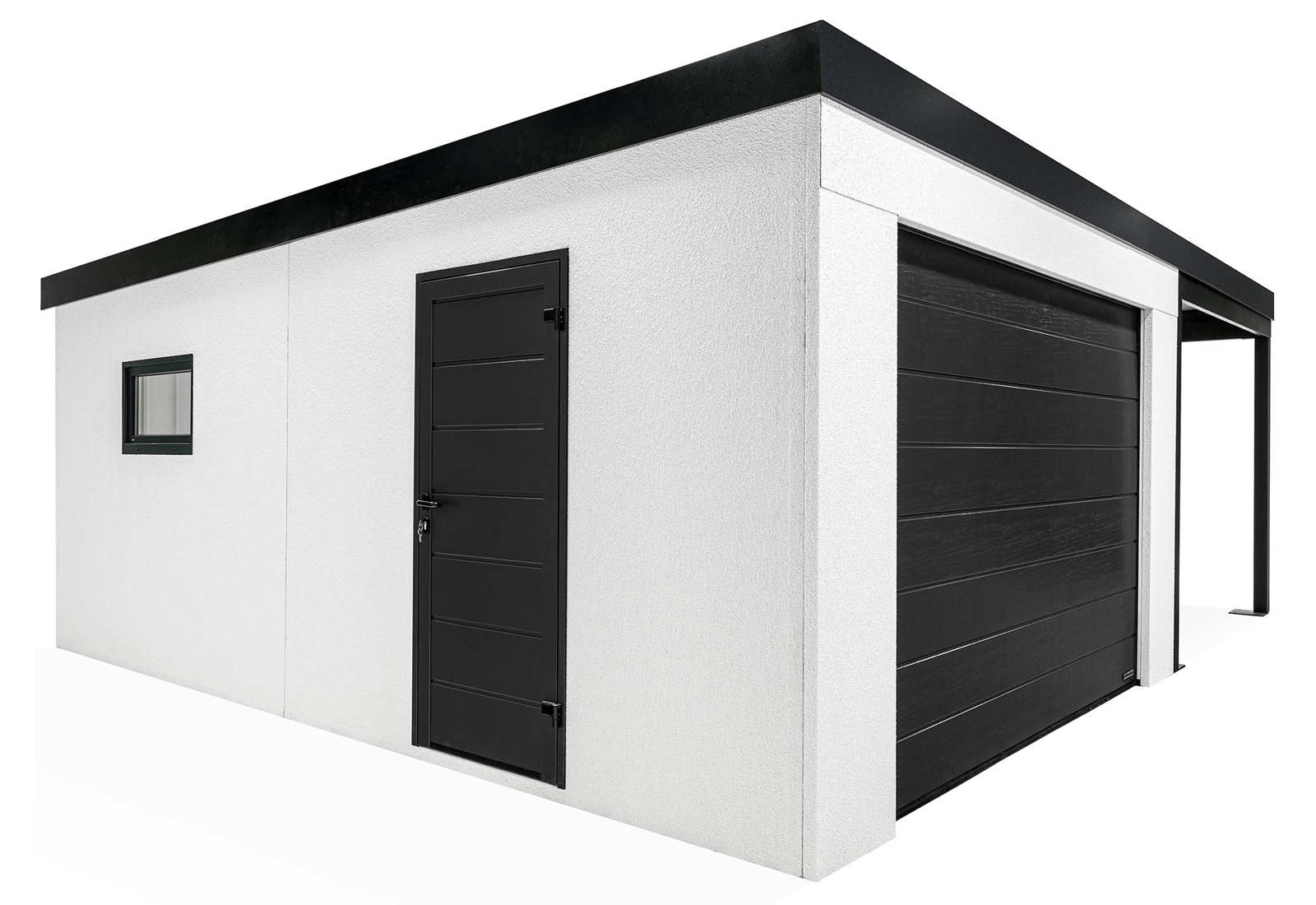 GARDEON® Garage mit Hörmann Garagentor, Fenster und Carport rechts