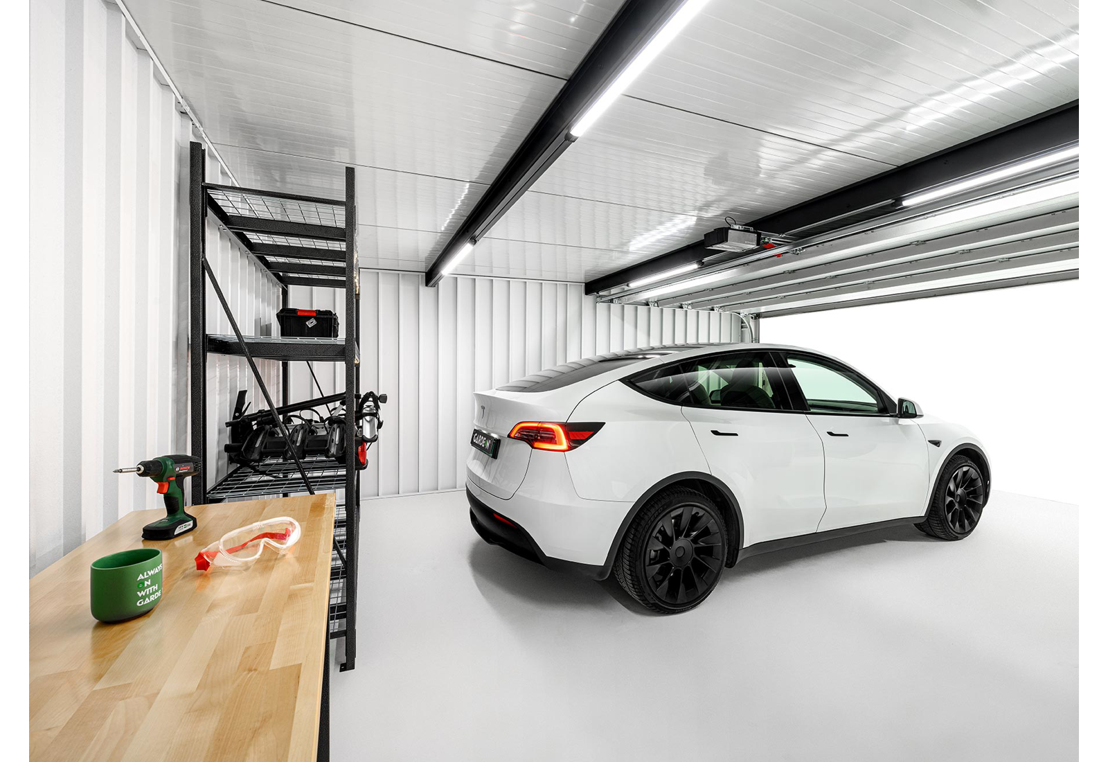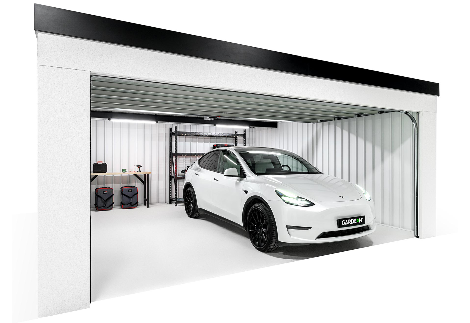 Entdecken Sie die Innovation im Bauwesen – GARDEON® Garagen mit fertigem Designputz der Schweizer Marke KABE. Unsere Garagen bieten Ihnen eine moderne Lösung mit herausragender Qualität und einzigartiger Technologie. Die ganzjährige Fassade aus selbstreinigendem Putz widersteht mühelos Wasser, hohen Temperaturen und allen Wetterbedingungen. Dank der fortschrittlichen Technologie ist die Stahlwand mit nur 5 cm Dicke wesentlich dünner als eine klassische 20 cm dicke Mauerwand – so sparen Sie wertvollen Platz sowohl auf Ihrem Grundstück als auch im Inneren der Garage.