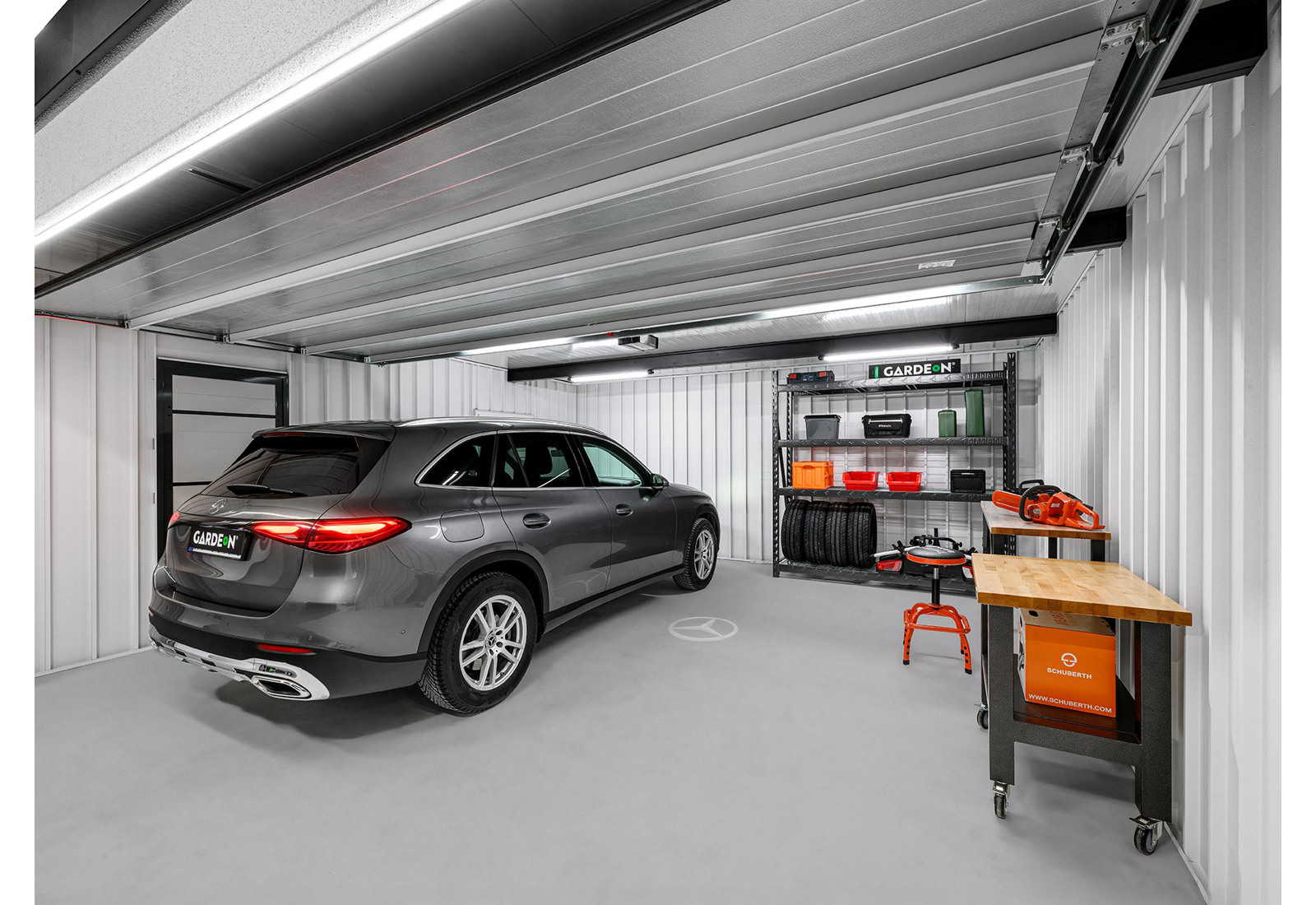 Entdecken Sie die Innovation im Bauwesen – GARDEON® Garagen mit fertigem Designputz der Schweizer Marke KABE. Unsere Garagen bieten Ihnen eine moderne Lösung mit herausragender Qualität und einzigartiger Technologie. Die ganzjährige Fassade aus selbstreinigendem Putz widersteht mühelos Wasser, hohen Temperaturen und allen Wetterbedingungen. Dank der fortschrittlichen Technologie ist die Stahlwand mit nur 5 cm Dicke wesentlich dünner als eine klassische 20 cm dicke Mauerwand – so sparen Sie wertvollen Platz sowohl auf Ihrem Grundstück als auch im Inneren der Garage.