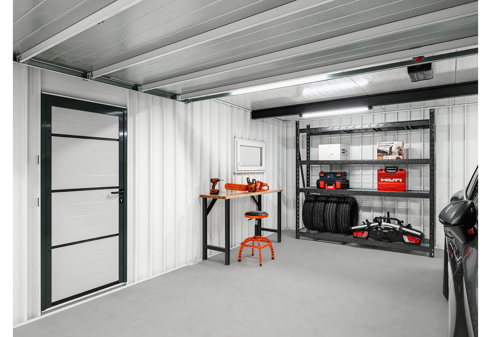 Die Garage Ihrer Träume kann Wirklichkeit werden! Unsere geräumige, montierte Garage vereint modernes Design mit höchster Funktionalität. Ausgestattet mit hochwertigen Hörmann-Garagentoren, integriertem Beleuchtungssystem und der Möglichkeit zum Anschluss an Solarpanele, bietet sie maximalen Komfort und Energieeffizienz. Die intelligent konstruierten Sicherheitstore gleiten platzsparend unter die Decke und sorgen für eine optimale Raumnutzung. Dank des ultraleisen Öffnungs- und Schließmechanismus genießen Sie höchsten Bedienkomfort – fast unhörbar aber spürbar praktisch.