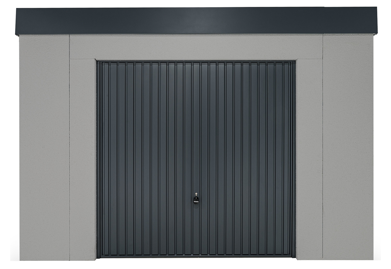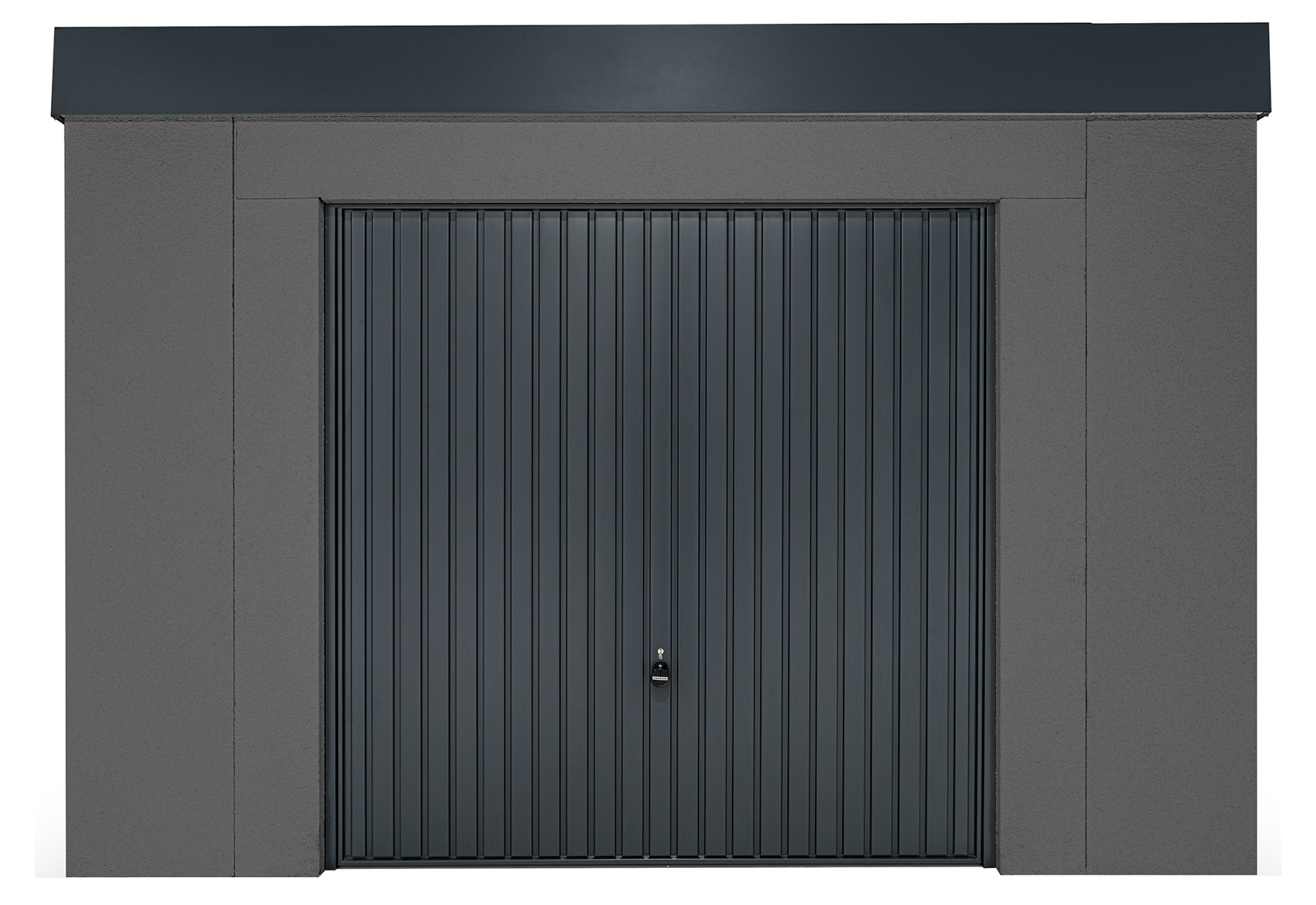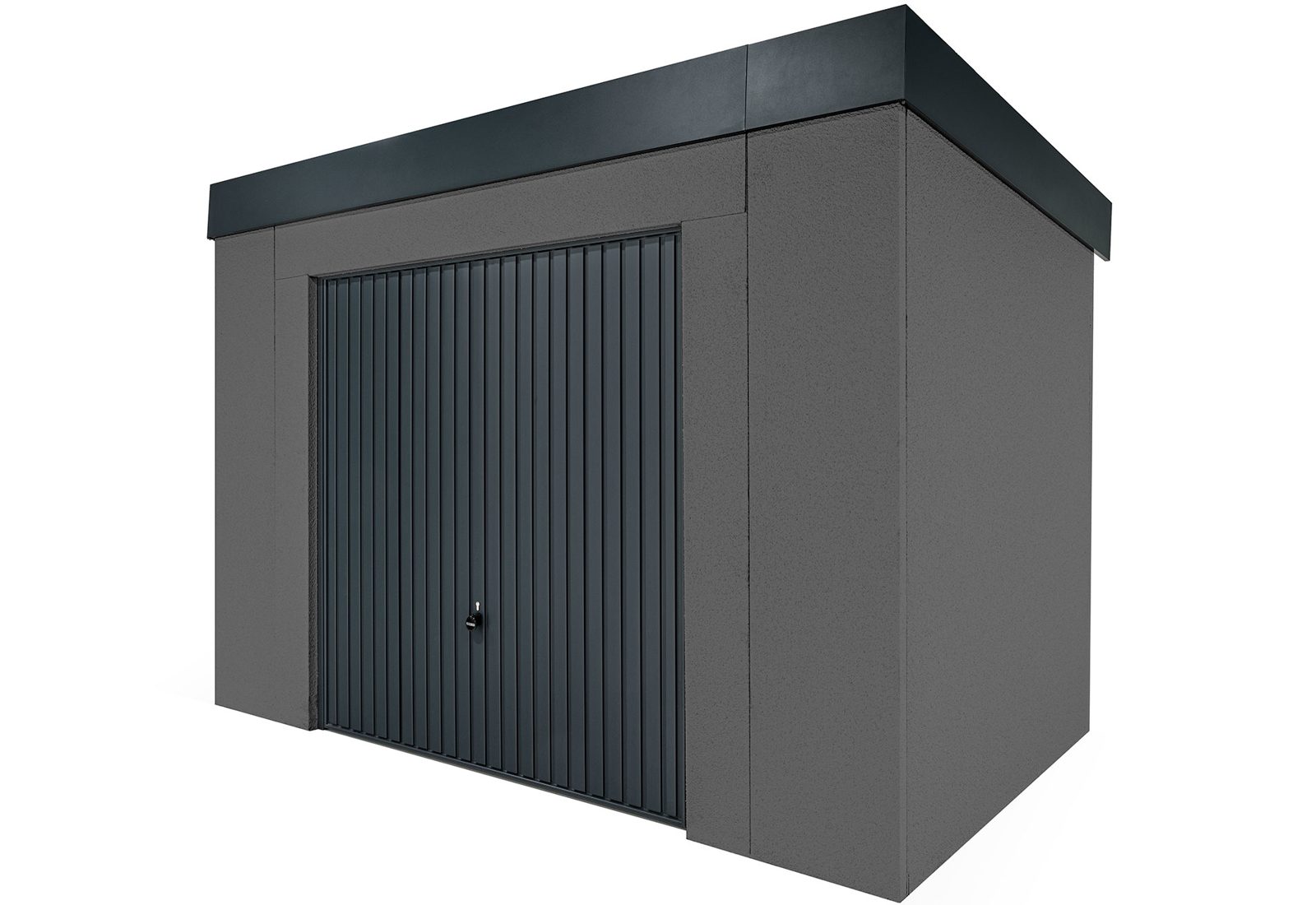Ihre Traumgarage gibt es wirklich! Ein geräumiges Gartenhaus mit hochwertigen Hörmann-Garagentoren, integrierter Beleuchtung und Solarbetrieb. Die segmentierten Torflügel falten sich nach innen und sparen so Platz. Das extrem leise Öffnen und Schließen der Tore ist ein zusätzlicher Bonus.