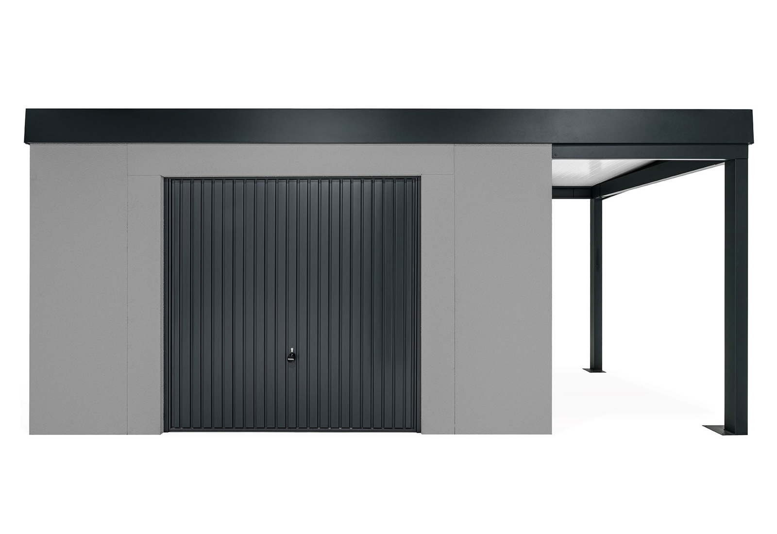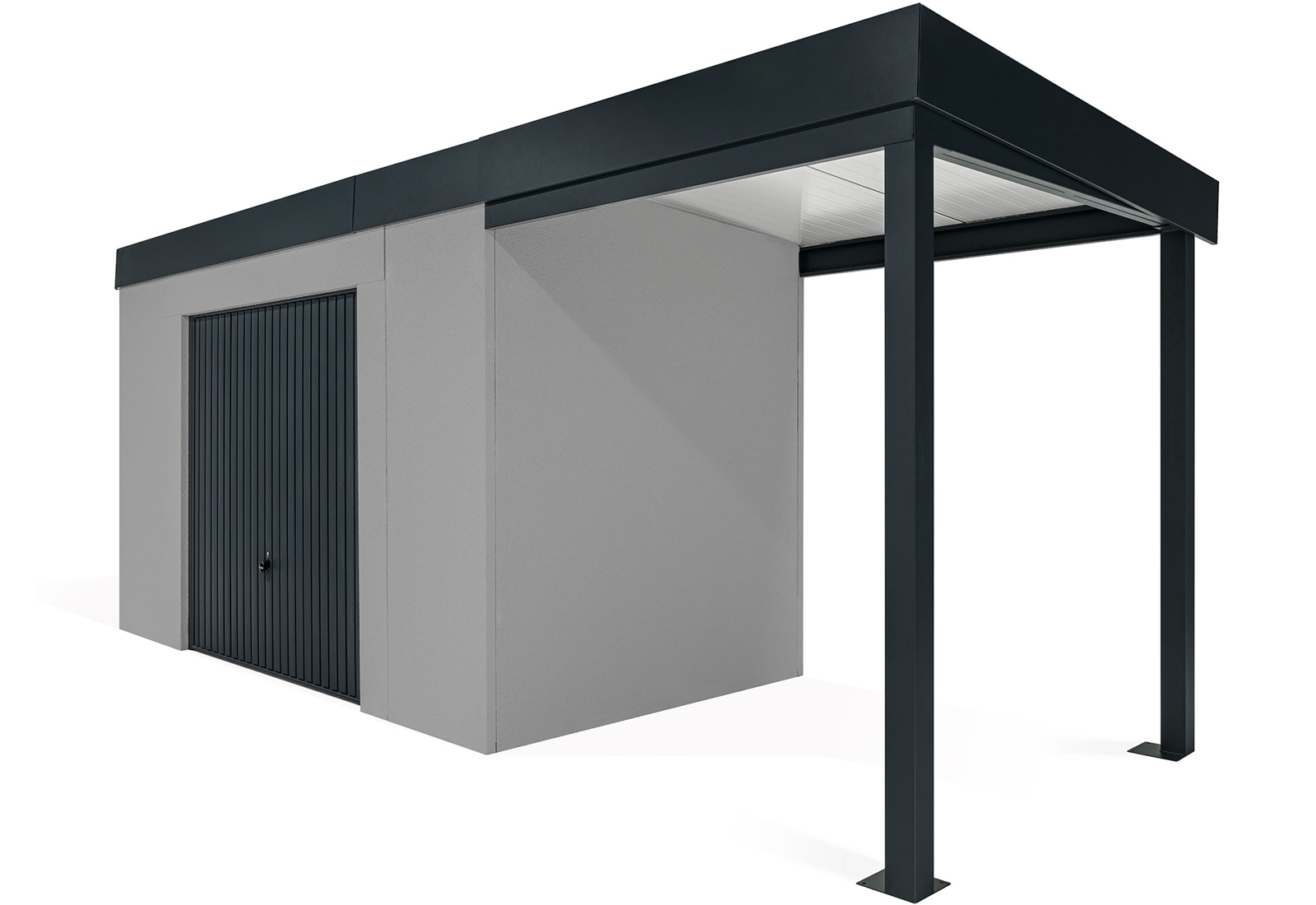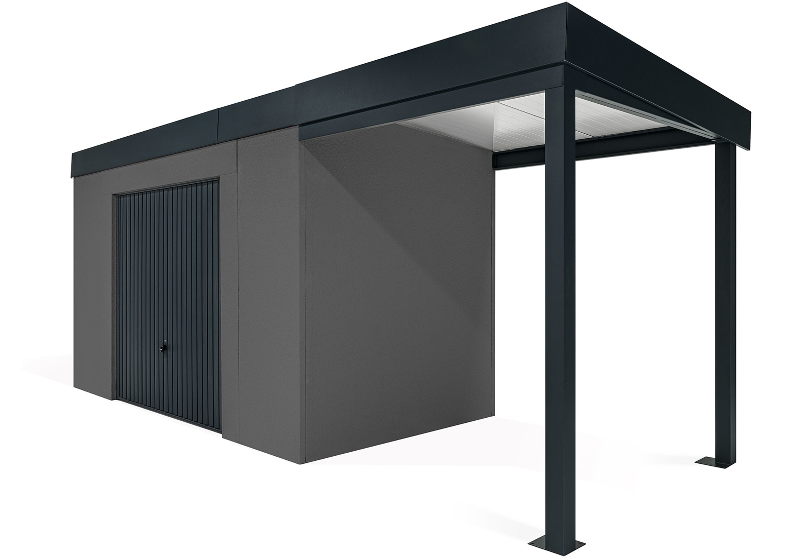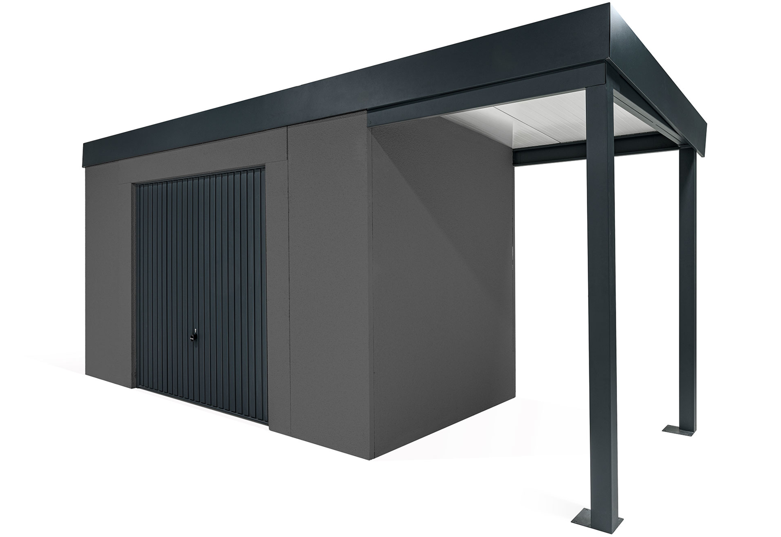 GARDEON® Gartenhaus mit sicherer Garagentür von Hörmann und überdachtem Bereich