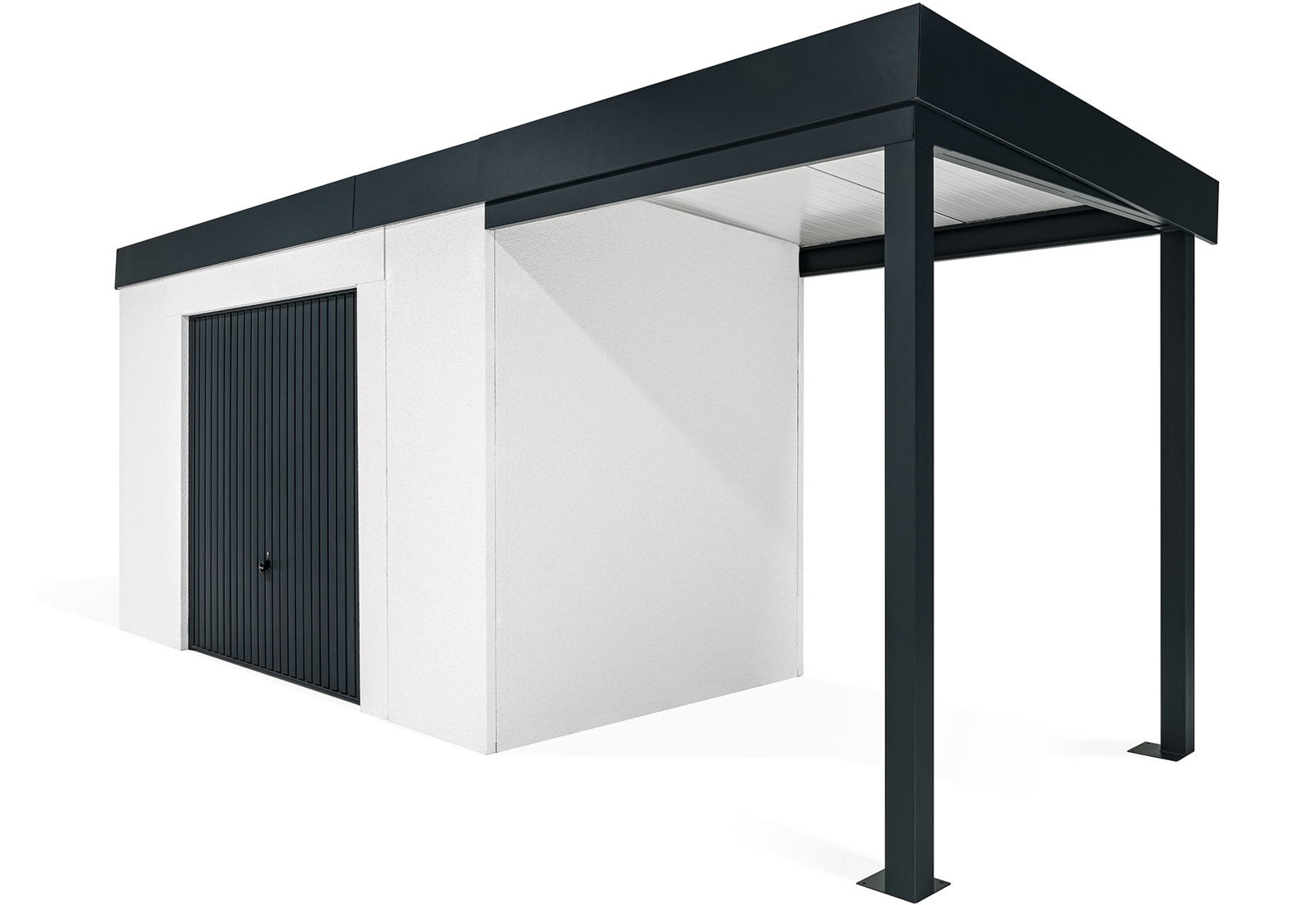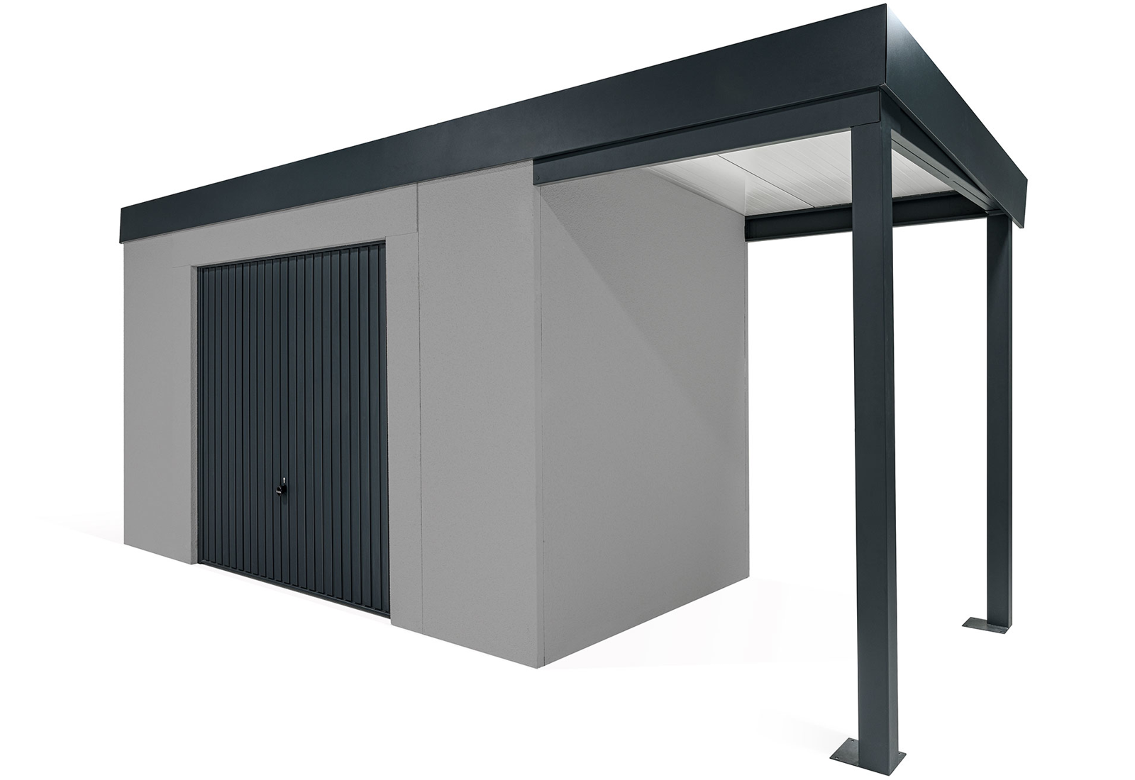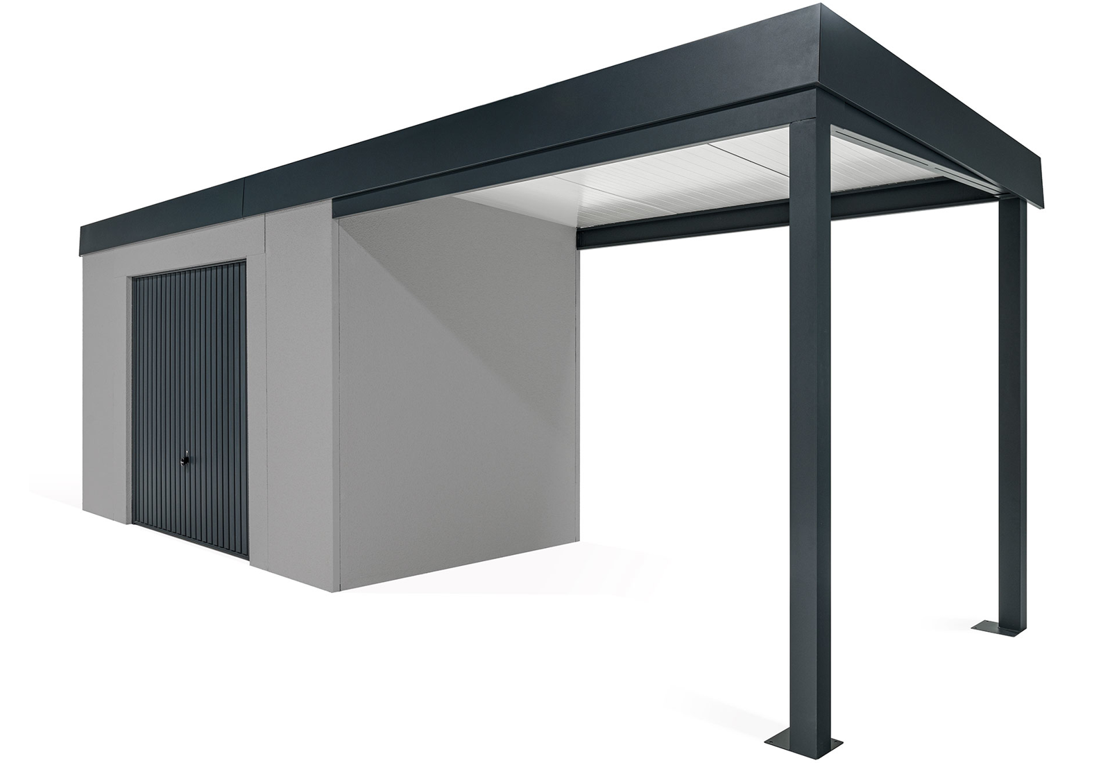 GARDEON® Gartenhaus mit sicherer Garagentür von Hörmann und überdachtem Bereich