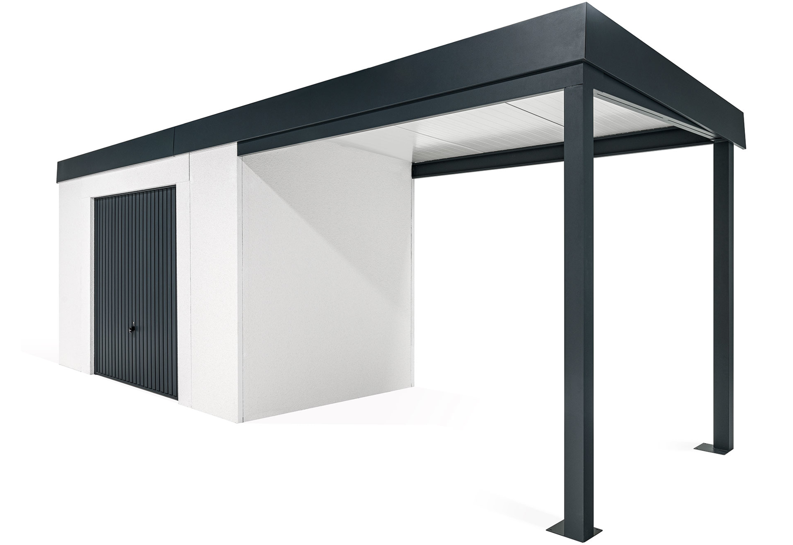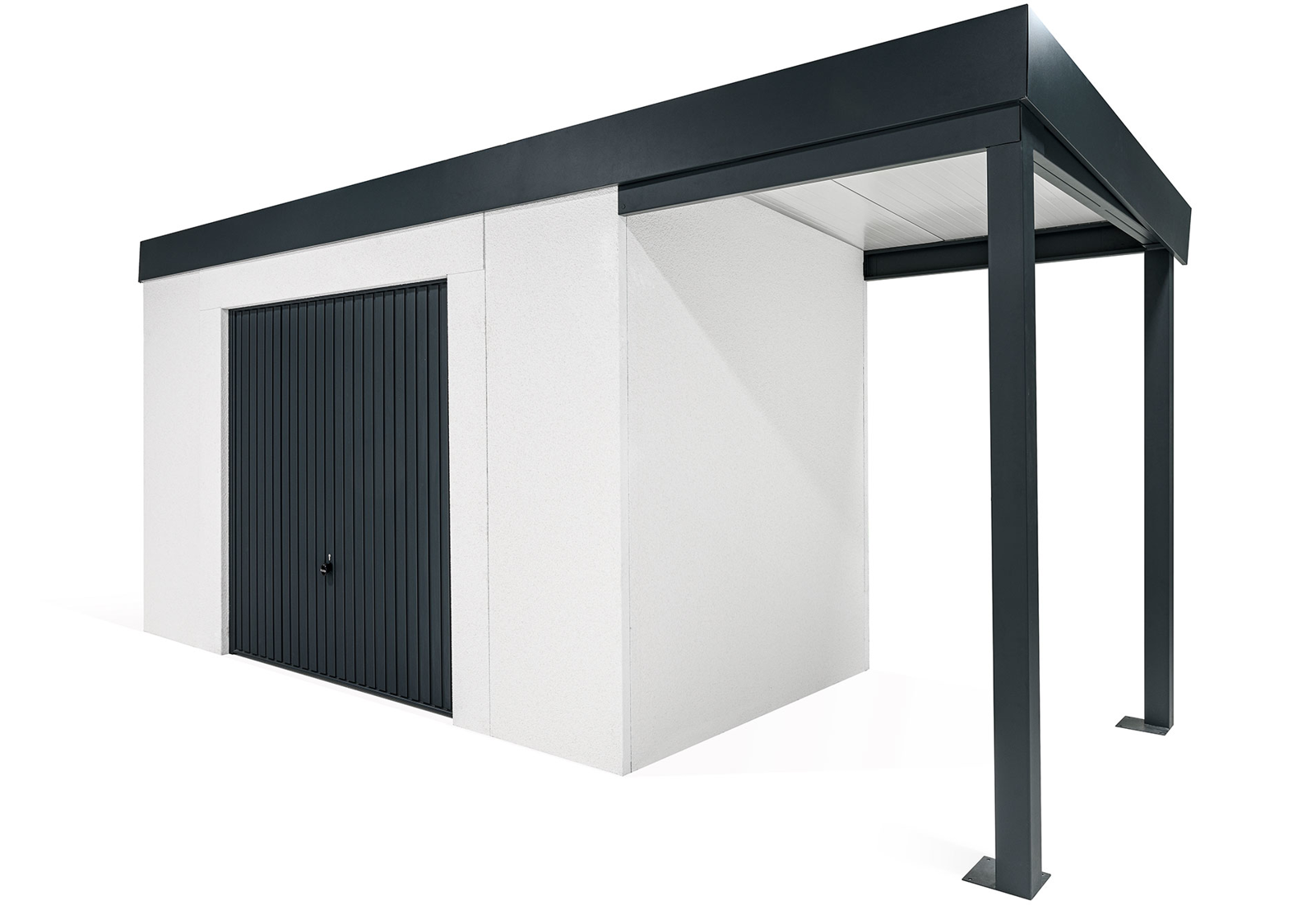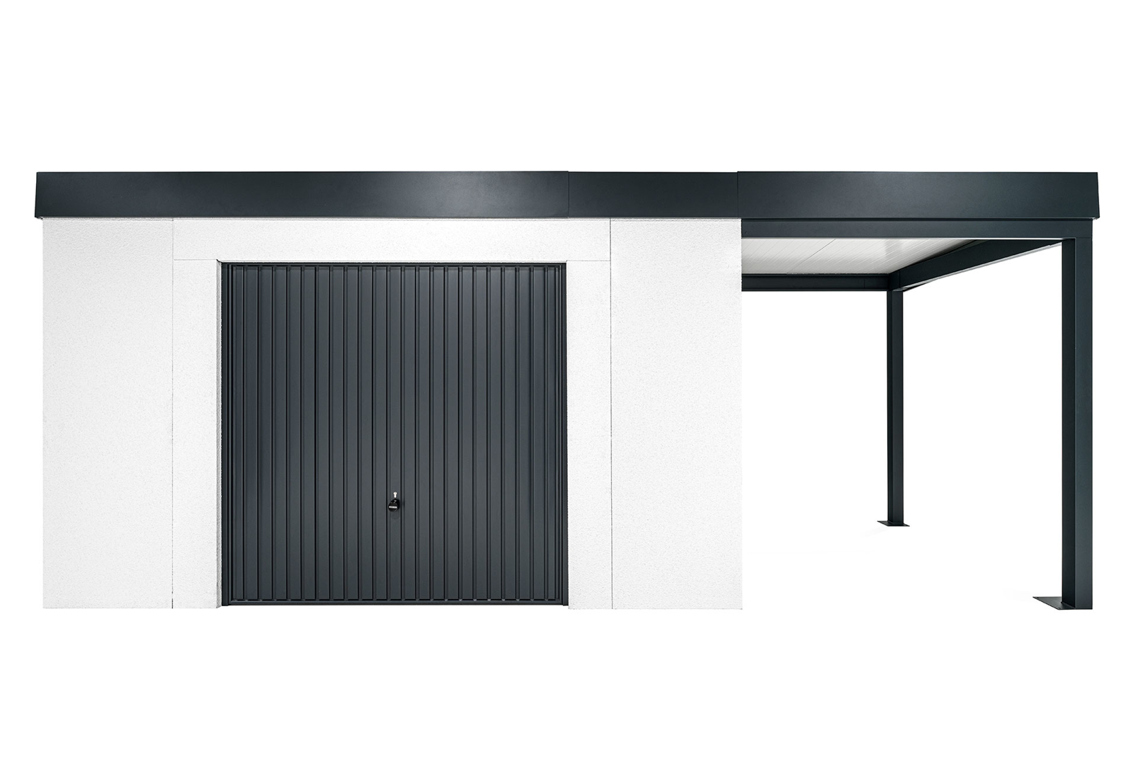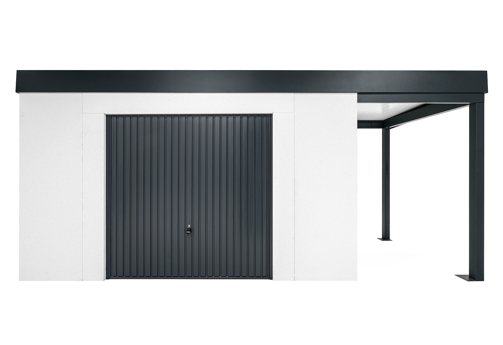 GARDEON® Gartenhaus mit sicherer Garagentür von Hörmann und überdachtem Bereich