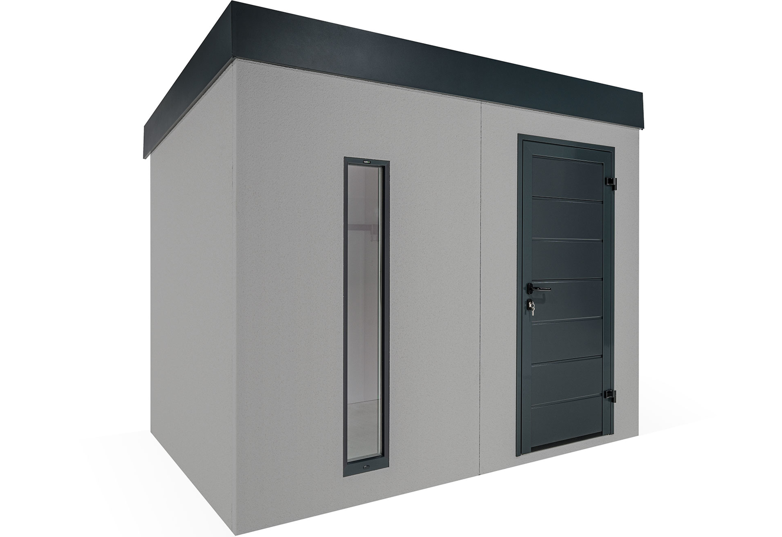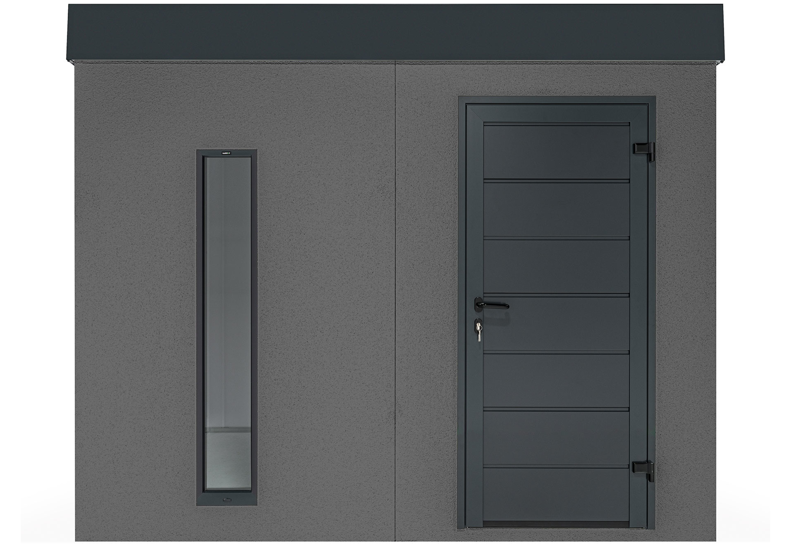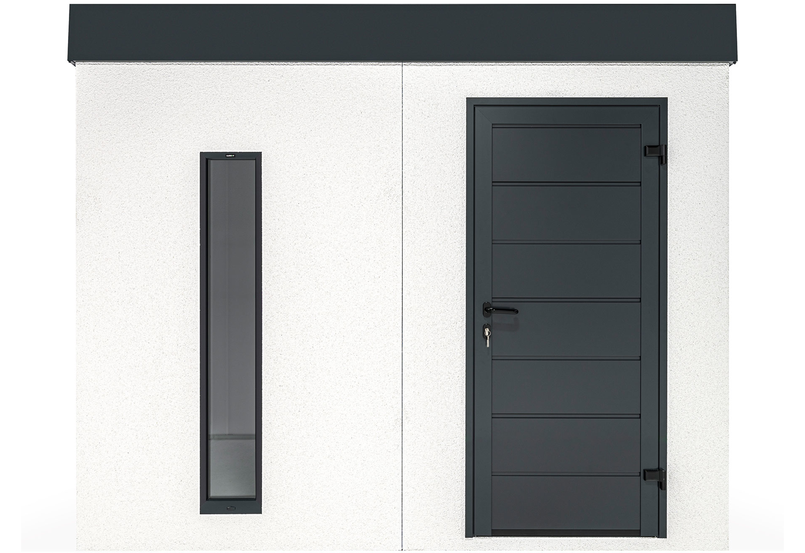 Ein Gartenhaus kann auch ohne herkömmliche Fenster lichtdurchflutet sein. Vertikale Kunststoff-Lichtband-Fenster mit Doppelverglasung bieten eine hervorragende Beleuchtungslösung. Der optimale Abstand von 20 cm zwischen den Lichtbändern sorgt für eine ausgewogene Balance von Licht und Schatten im großzügigen Innenraum