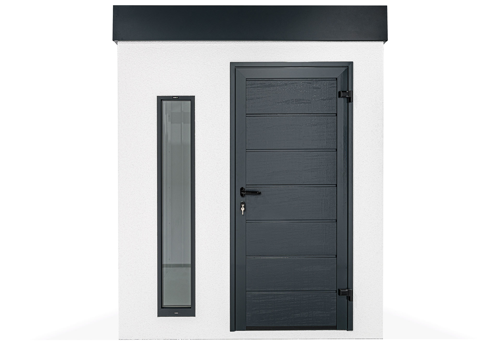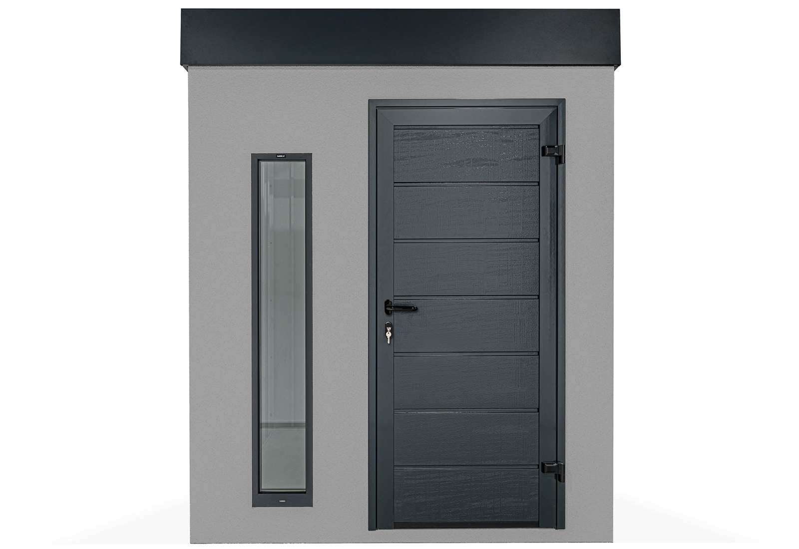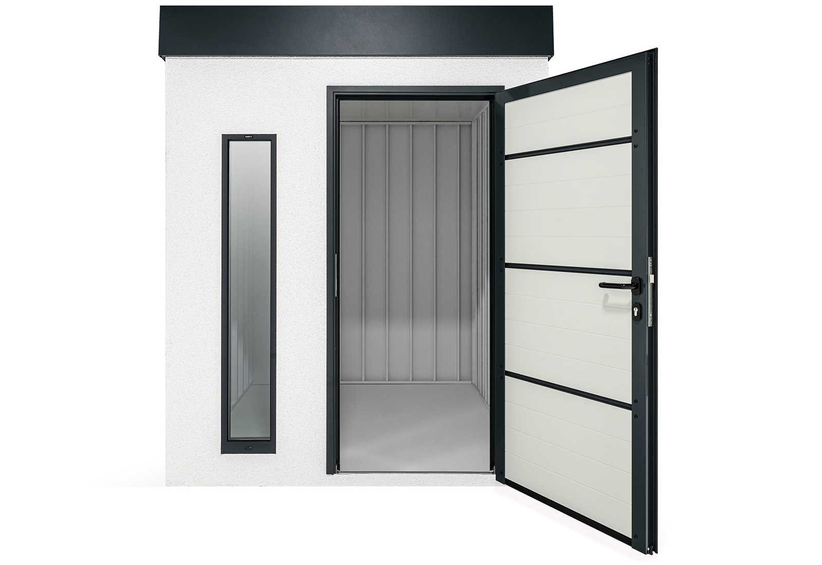 Ein Gartenhaus kann auch ohne herkömmliche Fenster lichtdurchflutet sein. Vertikale Kunststoff-Lichtband-Fenster mit Doppelverglasung bieten eine hervorragende Beleuchtungslösung. Der optimale Abstand von 20 cm zwischen den Lichtbändern sorgt für eine ausgewogene Balance von Licht und Schatten im großzügigen Innenraum