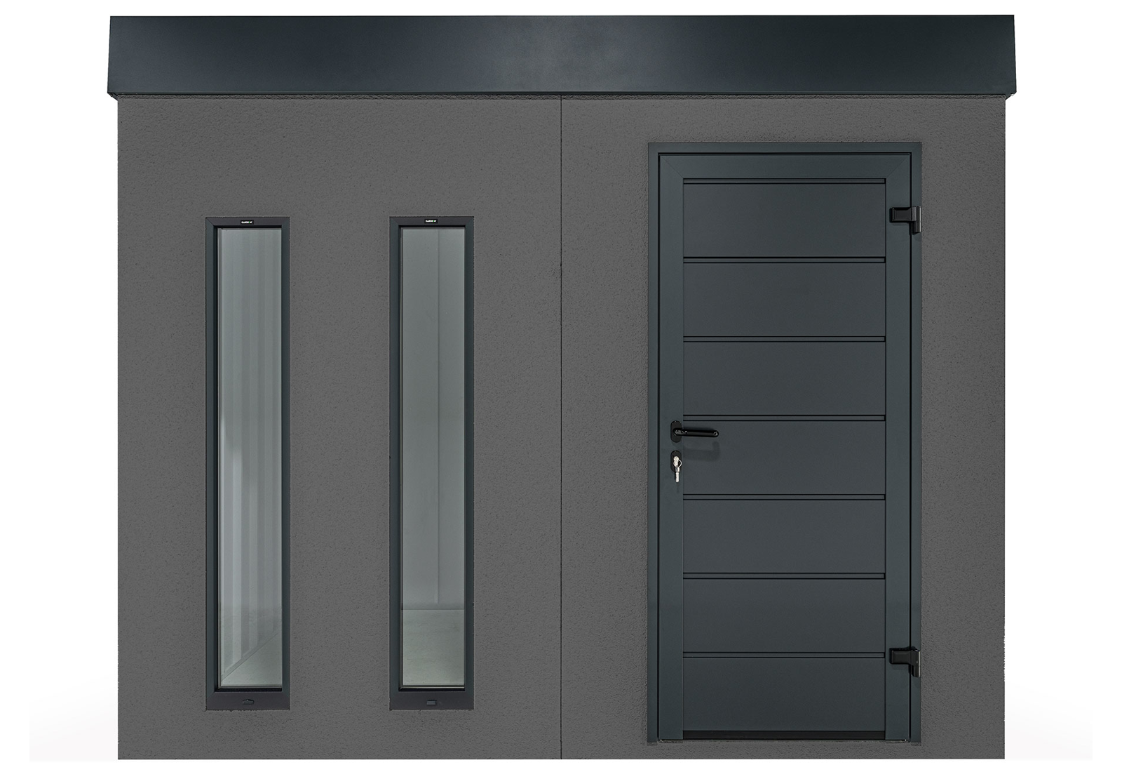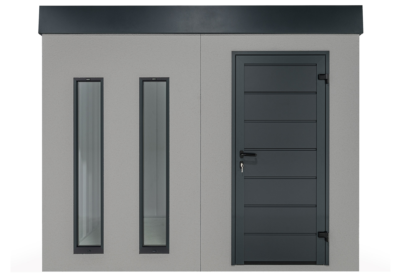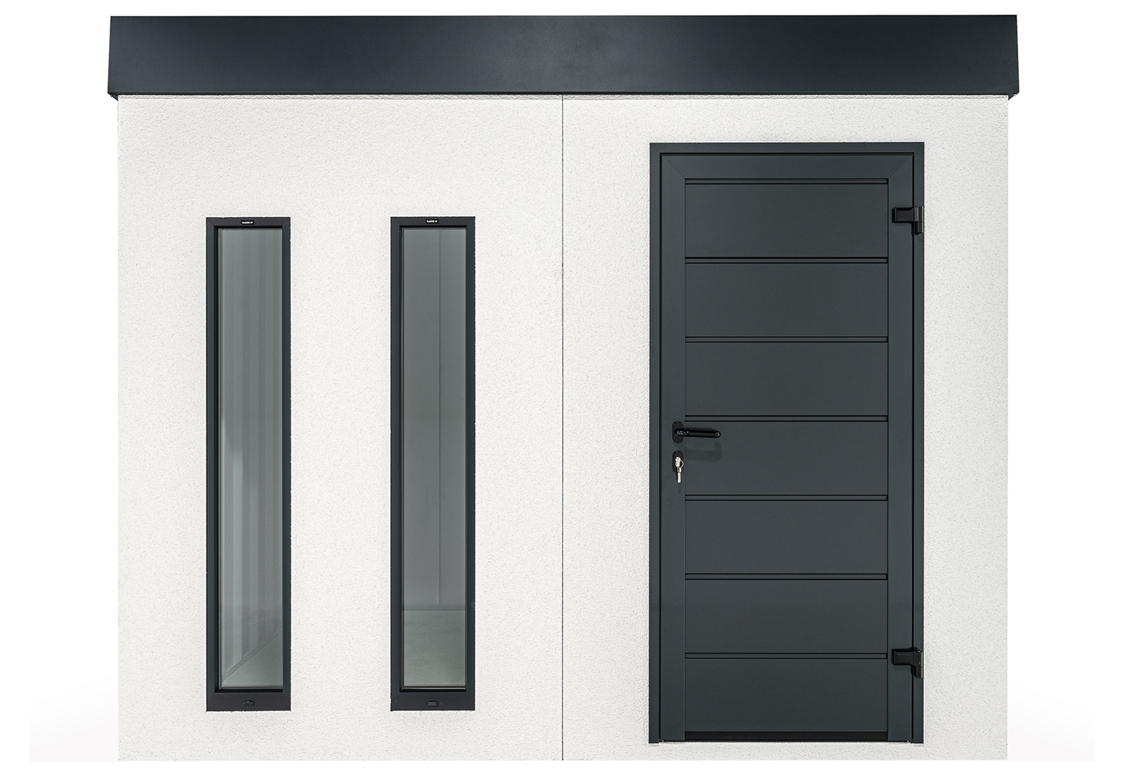Ein Gartenhaus kann auch ohne herkömmliche Fenster lichtdurchflutet sein. Vertikale Kunststoff-Lichtband-Fenster mit Doppelverglasung bieten eine hervorragende Beleuchtungslösung. Der optimale Abstand von 20 cm zwischen den Lichtbändern sorgt für eine ausgewogene Balance von Licht und Schatten im großzügigen Innenraum