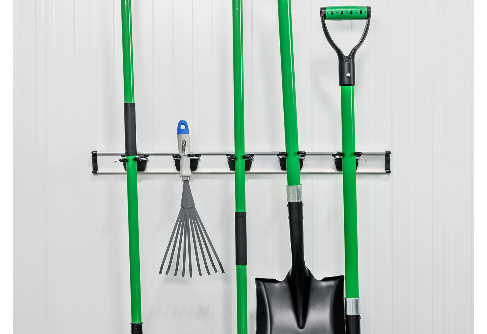 Es ermöglicht Ihnen, alles, was Sie benötigen, ordentlich zu verstauen – von Harken und Schaufeln bis hin zu Sägen oder Äxten. Alles ist übersichtlich organisiert und leicht zugänglich.